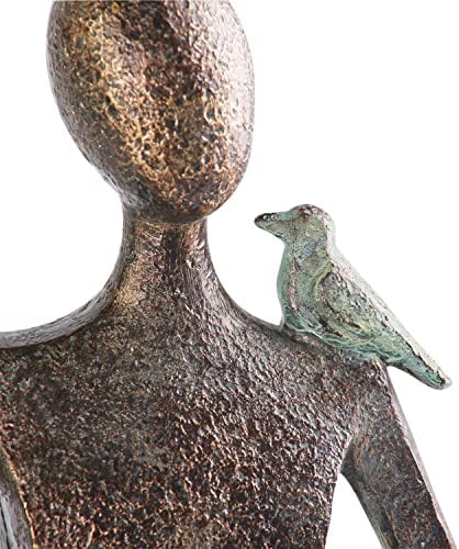 LOVELY DETAILS – Crafted from sturdy resin with a coppertone finish and verdigris bird, this featureless yet eye-catching figurine sits crisscross-applesauce, hands on her knees as if mediating.
