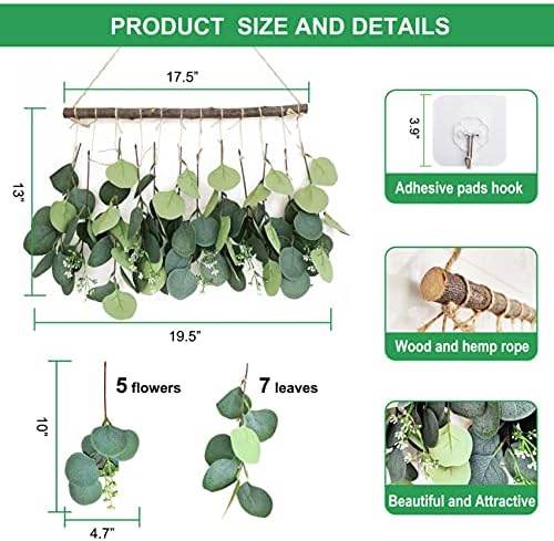 Material:Natural Mulberry Wood,Sisal rope,Plastic Application: boho, farmhouse, DIY,wall decor,door hanging Package Incude:1 wooden stick,1 hook,12 Artificial Eucalyptus Greenery